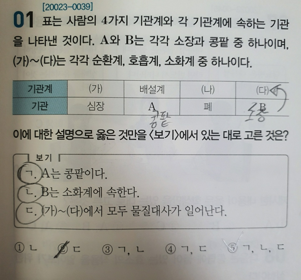 여담으로, 지금이야 당연한 것이지만 제가 수능 세대 였을때 '동맥은 기관이다'가 처음 보기로 등장해서 꽤나 많은 오답률을 기록했던게 생각나네요. 올해도 또 다른 새로운 보기가 등장할텐데, 제가 매년 나름대로 예측을 해보고 있습니다.