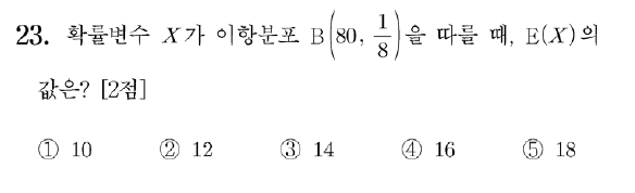 23번 문제는 간단한 이항분포의 평균을 묻는 문항입니다.