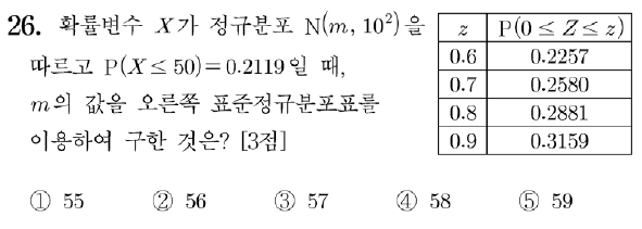 26번 문제는 정규 분포표를 이용하여 확률을 구하는 문항인데요.