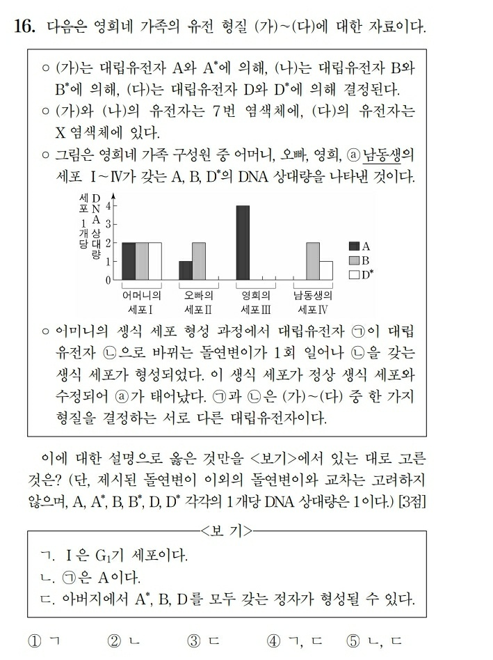17번이야 항상 나오던 가계도가 또 어렵게 나온거라 그렇게 이변은 아니였고, 16번 문항이 예전 기출에서부터 나오던 소재를 차용해서 약간 더 발전시킨 문항이라고 볼 수 있습니다.