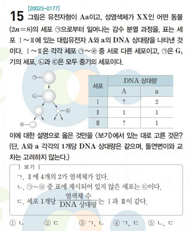 ㄷ 보기는 간단한 계산 문제인데, l이 lll에 비해 염색체 수가 2배이고 DNA 상대량은 4배이므로 틀렸습니다.